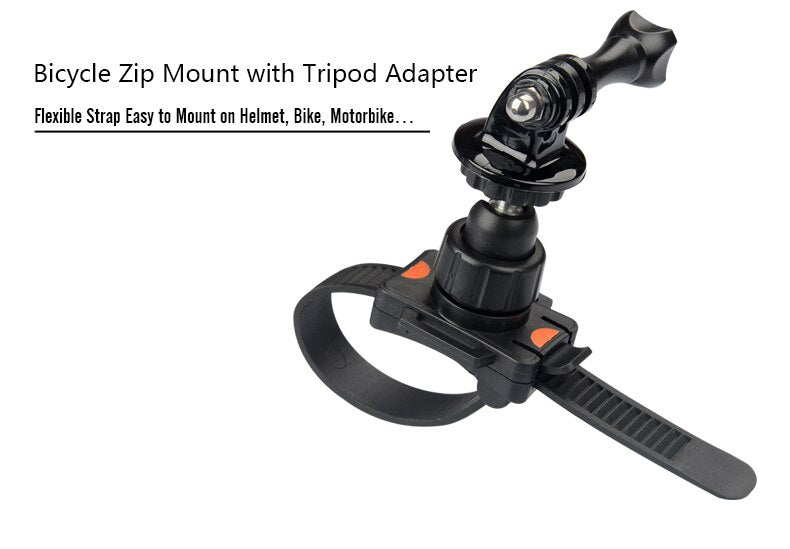 Helmet Bicycle Zip Mount Strap Tripod Holder with Adapter Mount